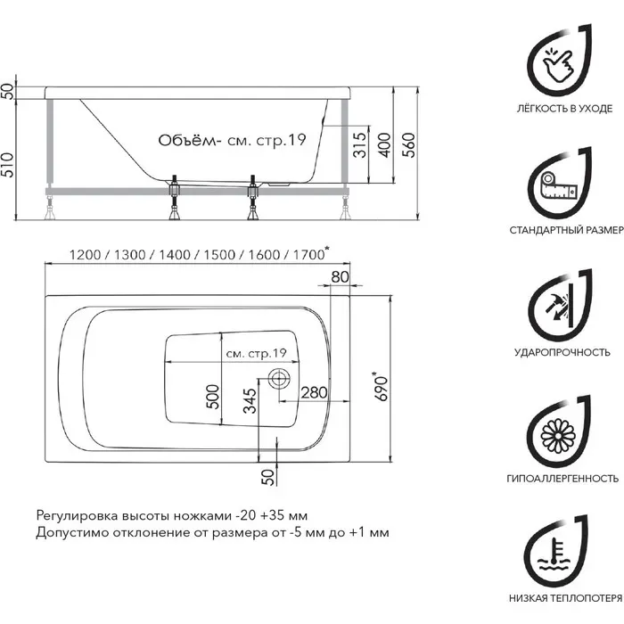 Стандартные размеры, см:150x70