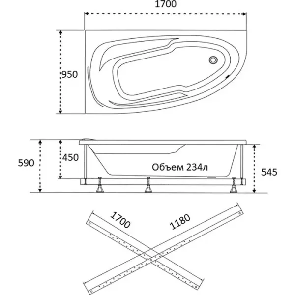 Акриловая ванна 1ACReal Мадрид Щ0000046660 правая 170x95 см на Х-каркасе белый