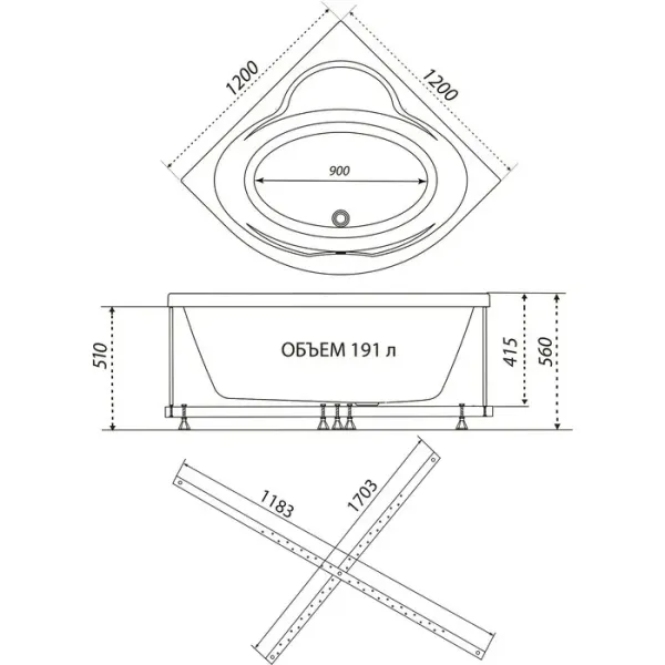 Акриловая ванна 1ACReal Мартин Щ0000045647 обрезанная 120 см белый купить