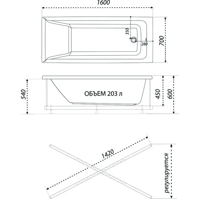 Ванна акриловая 1ACReal Тори 160x70 см — 1 шт.
