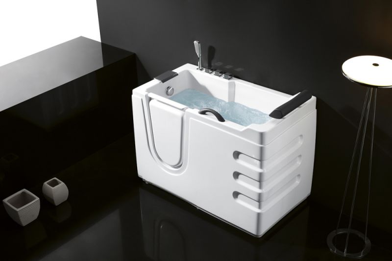 Главная особенность ванны — 100% герметичная дверь на петлях с надежным замком, которая позволяет легко входить и выходить, а невысокий порог входа (всего 28 см) значительно упрощает использование. Глубина ванны 71 см и объем 250 литров создают простор для расслабления, не вызывая дискомфорта.