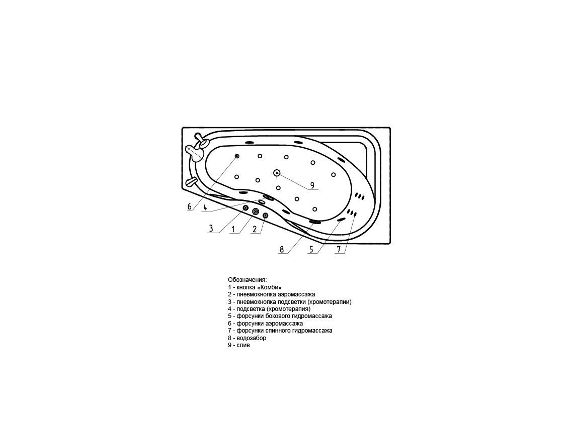 • Так-же ванну можно укоплектовать Гидромассажным оборудованием