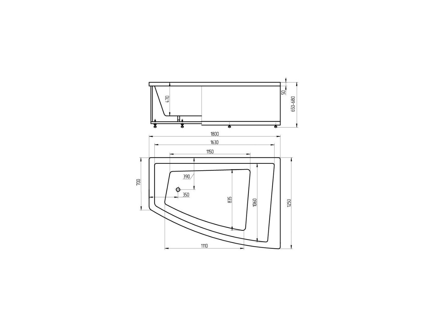 Акриловая ванна АКВАТЕК Оракул 180x125 см левая