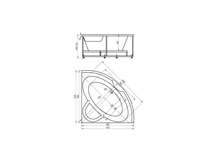 Длина, см:138,5Ширина, см:138,5Высота, см:69–73Глубина, см:46Форма:УгловаяВнутр. размер дна, см:110Внутр. размер ванны, см:148Внутренняя ширина, см:78,5Макс. емкость, л:220Вес, кг:45