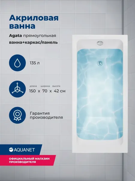 Акриловая ванна Aquanet Agata 353058 150x70 см с каркасом и фронтальной панелью купить