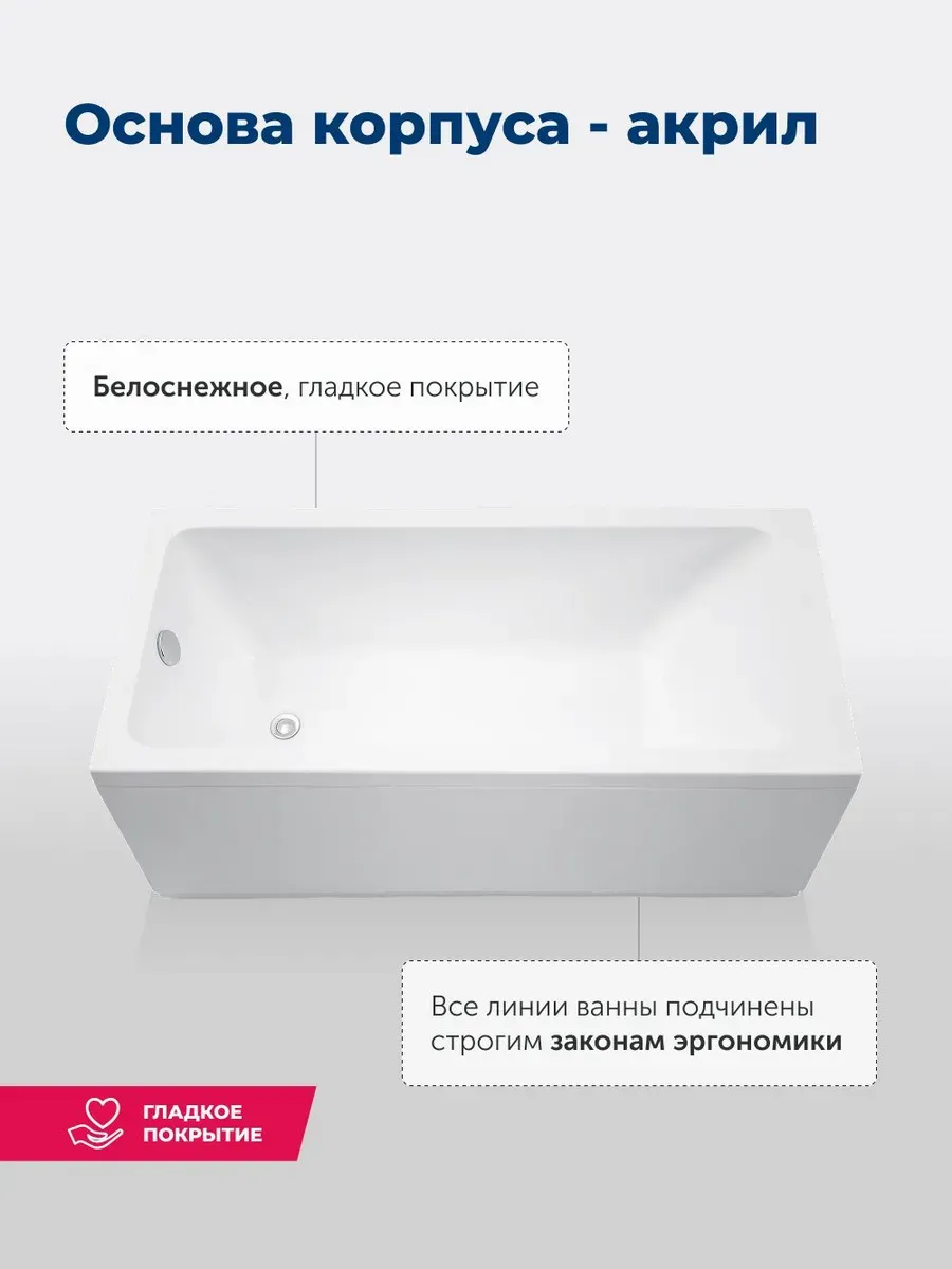 Акриловая ванна Aquanet создана с учетом растущего спроса на ванны простой прямоугольной формы в популярных размерах. Это модель с прямыми бортами и пологой спинкой, где соблюден идеальный угол для комфортного нахождения в ванне. Спинка плавно перетекает в бортик, поэтому релакс гарантирован даже без использования подголовника. Все линии ванны подчинены строгим законам эргономики. Чаша в этой ванне устроена таким образом, что для обозначенных размеров в ней достигнут максимально возможный внутренний объем, и это при комфортной глубине от слива ванны до борта. Ванна рассчитана на нагрузку свыше 300 кг, так что даже крепкий мужчина сможет без опаски находиться в ней. Двойной слой армирования обеспечивает надежность чаши, а закладные из МДФ-плит в местах наибольшей нагрузки усиливают эффект.