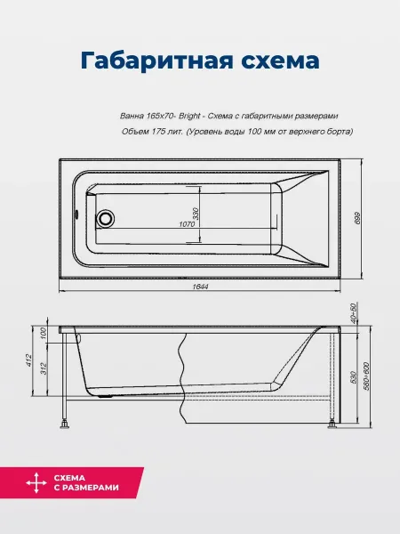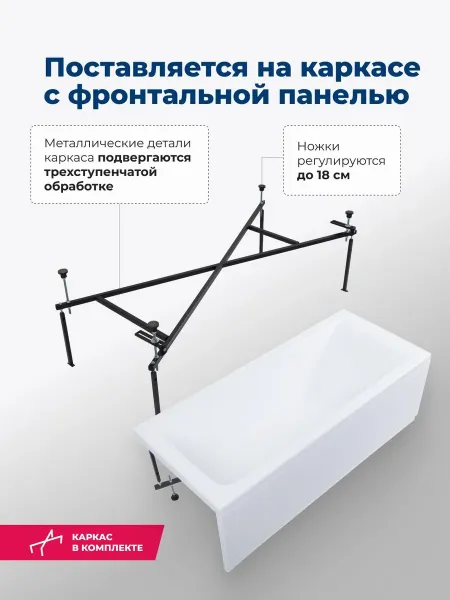 Акриловая ванна Aquanet Bright 347137 165x70 см с каркасом и фронтальной панелью