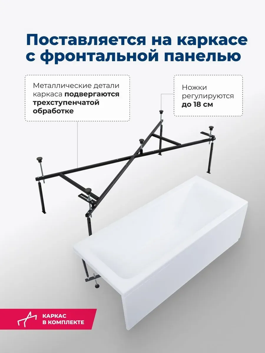 Акриловая ванна Aquanet Bright 347140 175x70 см с каркасом и фронтальной панелью купить