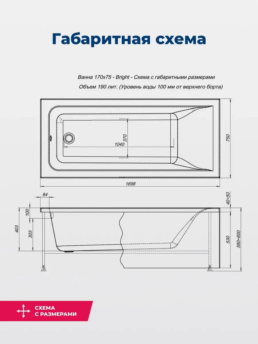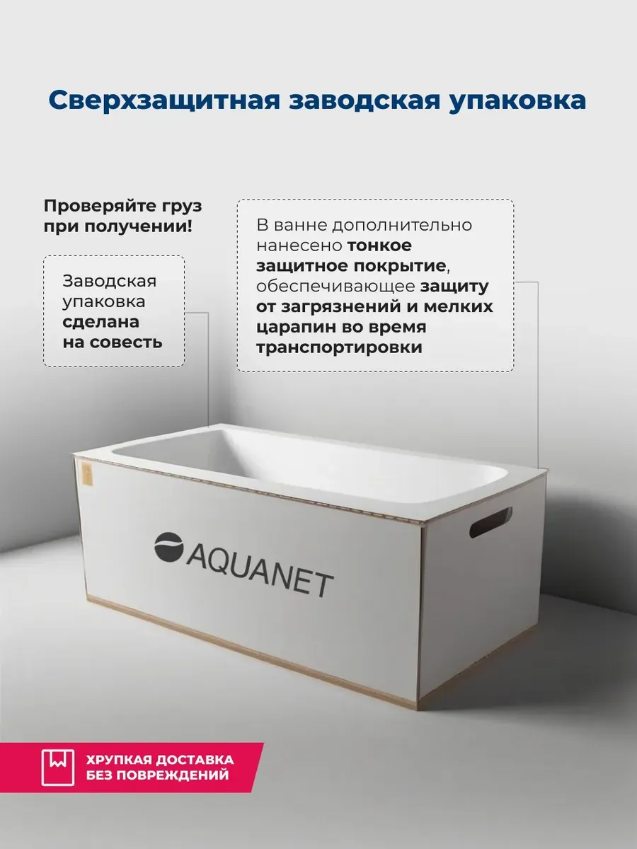 Акриловая ванна Aquanet Bright 170x75 создана с учетом растущего спроса на ванны простой прямоугольной формы в популярных размерах. Это модель с прямыми бортами и пологой спинкой, где соблюден идеальный угол для комфортного нахождения в ванне. Спинка плавно перетекает в бортик, поэтому релакс гарантирован даже без использования подголовника. Все линии ванны подчинены строгим законам эргономики. В современных условиях ширина ванны 75 см при длине 170 см - одно из популярных габаритов, так как прекрасно вписываются в стандартную планировку современных ванных комнат. Чаша в этой ванне устроена таким образом, что для обозначенных размеров в ней достигнут максимально возможный внутренний объем, а именно 190 литров, и это при комфортной глубине в 403 мм от слива ванны до борта. Ванна рассчитана на нагрузку свыше 300 кг, так что даже крепкий мужчина сможет без опаски находиться в ней. Двойной слой армирования обеспечивает надежность чаши, а закладные из МДФ-плит в местах наибольшей нагрузки усиливают эффект.