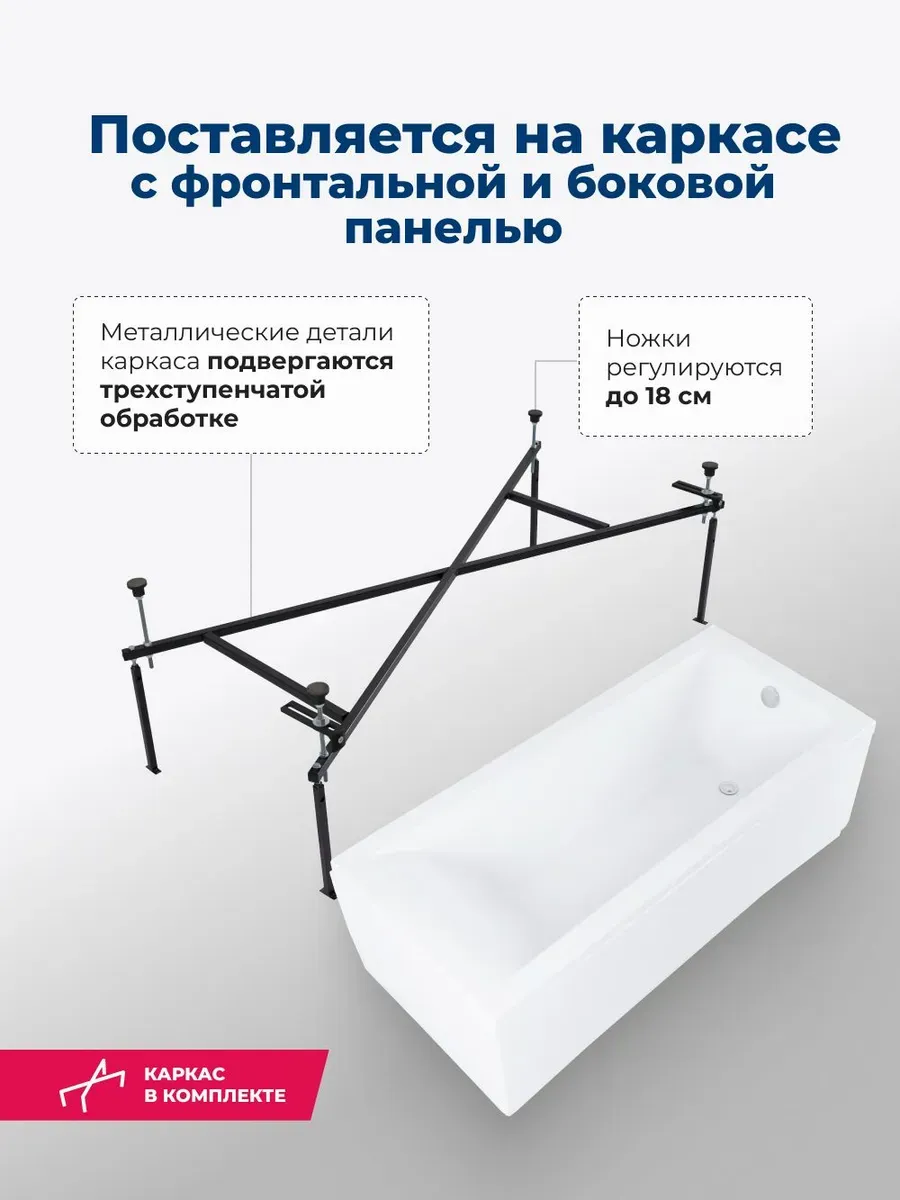 Акриловая ванна Aquanet Bright 347864 170x75 см с каркасом с боковой и фронтальной панелями купить