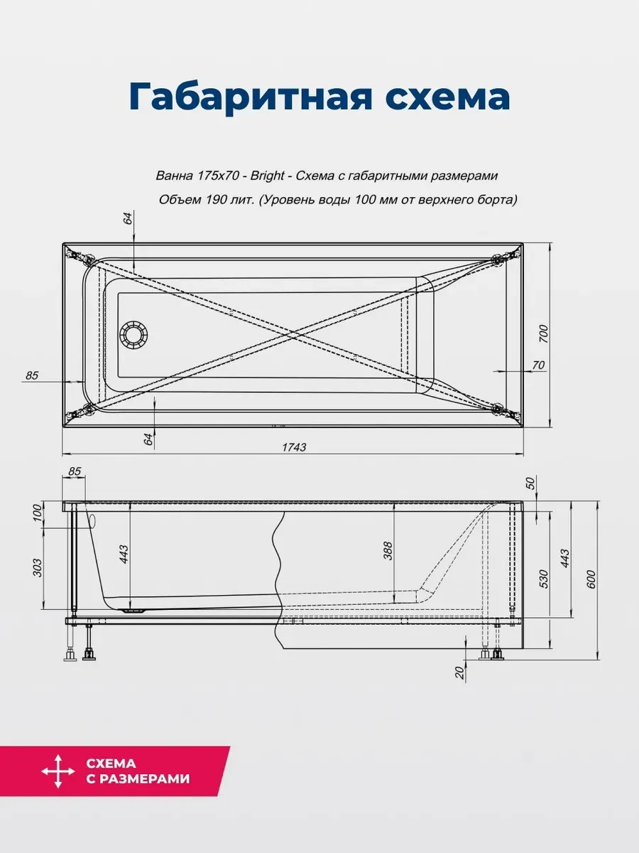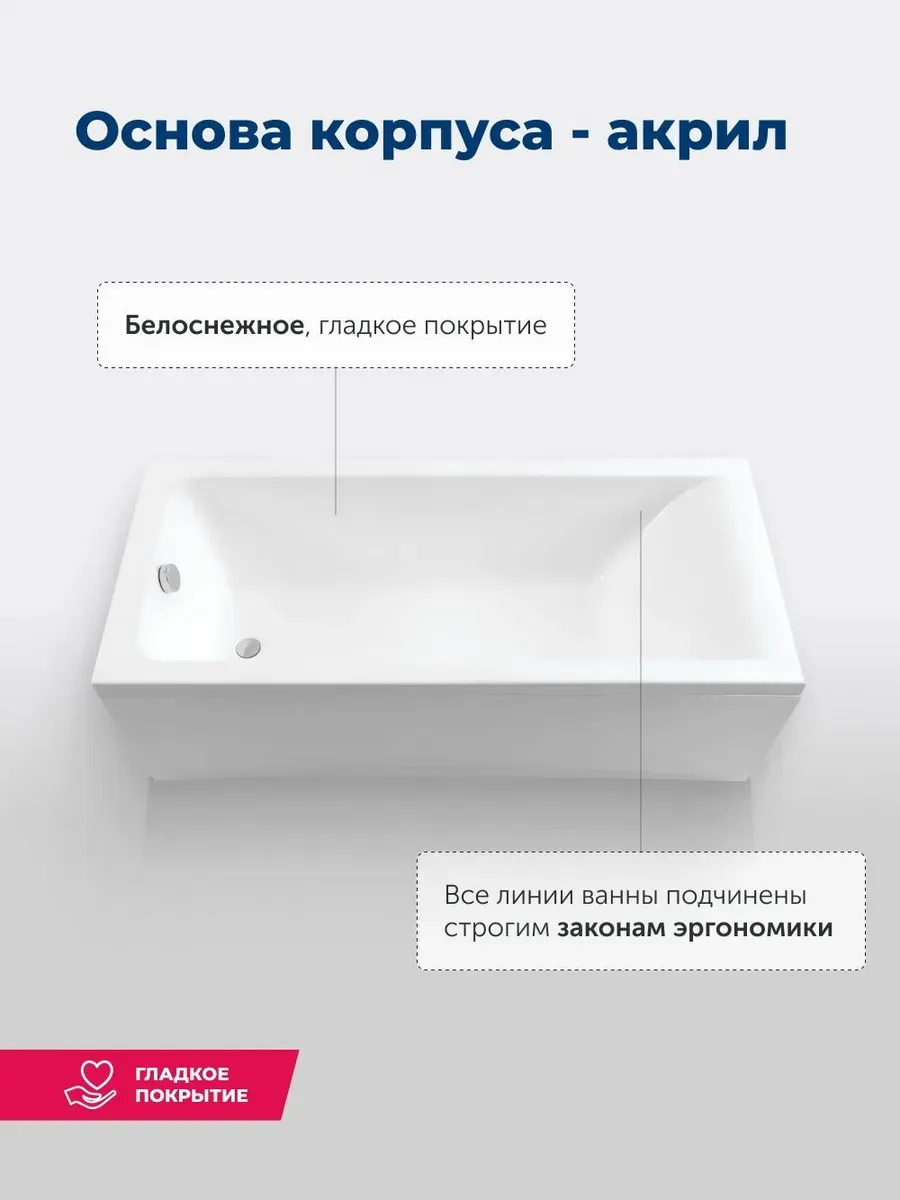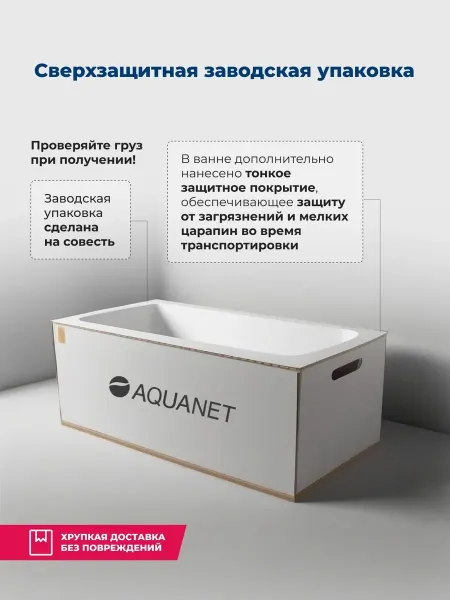 Акриловая ванна Aquanet Bright 175x70 создана с учетом растущего спроса на ванны простой прямоугольной формы в популярных размерах. Это модель с прямыми бортами и пологой спинкой, где соблюден идеальный угол для комфортного нахождения в ванне. Спинка плавно перетекает в бортик, поэтому релакс гарантирован даже без использования подголовника. Все линии ванны подчинены строгим законам эргономики. В современных условиях ширина ванны 70 см при длине 175 см - это наиболее востребованные габариты, так как прекрасно вписываются в стандартную планировку современных ванных комнат. Чаша в этой ванне устроена таким образом, что для обозначенных размеров в ней достигнут максимально возможный внутренний объем, а именно 190 литров, и это при комфортной глубине в 393 мм от слива ванны до борта. Ванна рассчитана на нагрузку свыше 300 кг, так что даже крепкий мужчина сможет без опаски находиться в ней. Двойной слой армирования обеспечивает надежность чаши, а закладные из МДФ-плит в местах наибольшей нагрузки усиливают эффект.