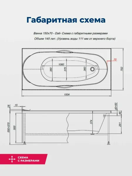 Акриловая ванна Aquanet Dali 347874 150x70 см с каркасом с боковой и фронтальной панелями купить