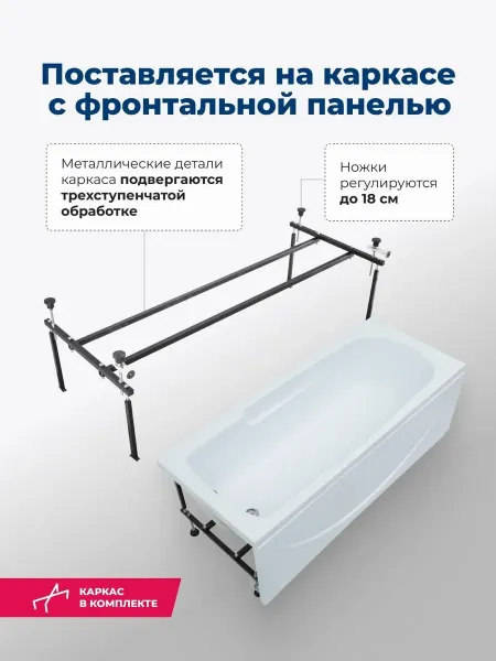 Акриловая ванна Aquanet Extra 347148 170x70 см с каркасом и фронтальной панелью купить