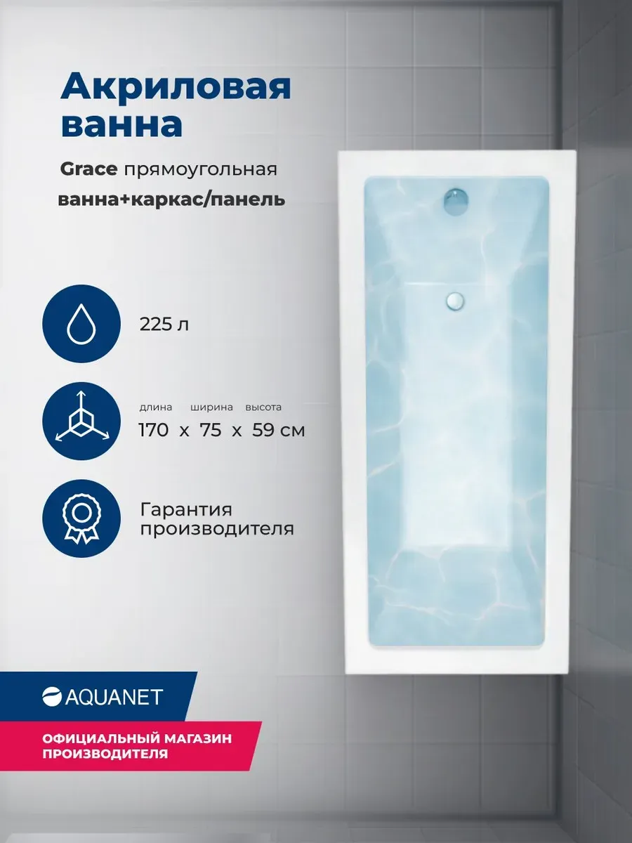 Акриловая ванна Aquanet Grace 347150 170x75 см с каркасом и фронтальной панелью купить