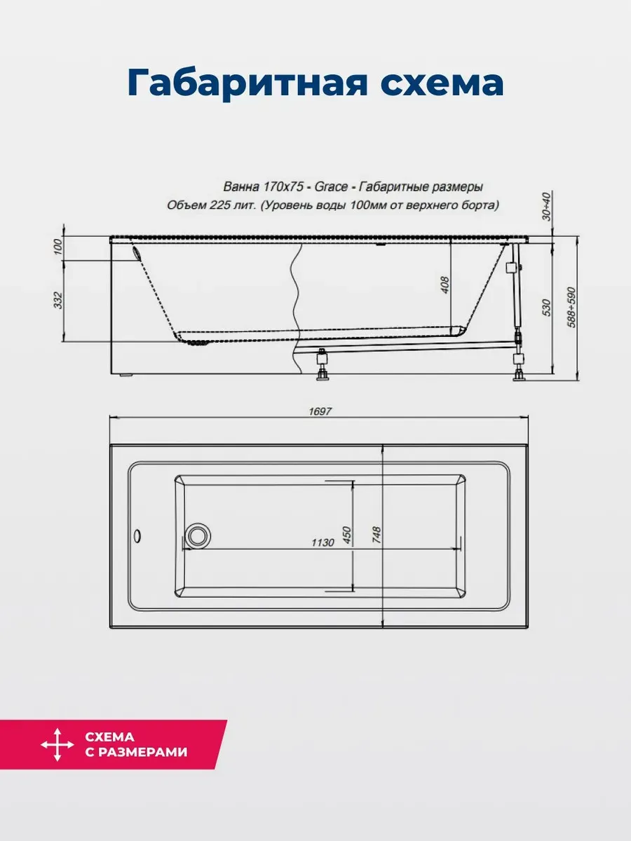 Акриловая ванна Aquanet Grace 170x75 классической прямоугольной формы отлично впишется в совреме... Подробнее