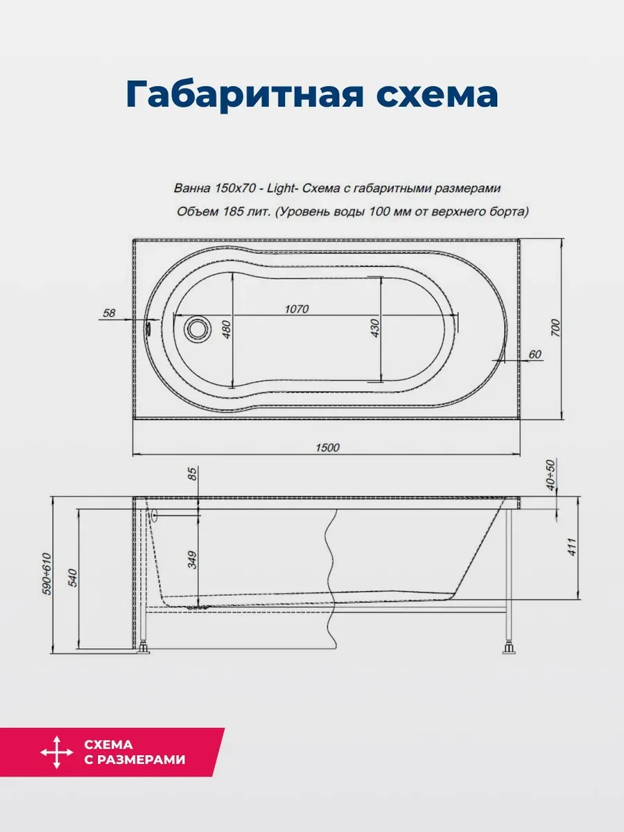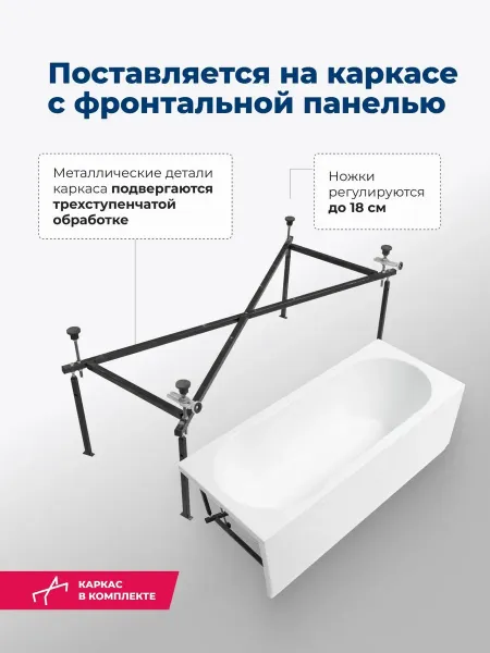 Акриловая ванна Aquanet Light 347153 150x70 см с каркасом и фронтальной панелью купить
