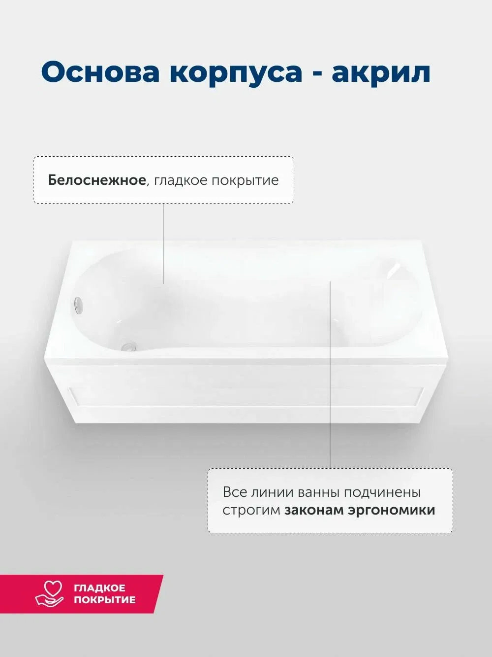 Акриловая ванна Aquanet Light 347880 170x70 см с каркасом с боковой и фронтальной панелями купить