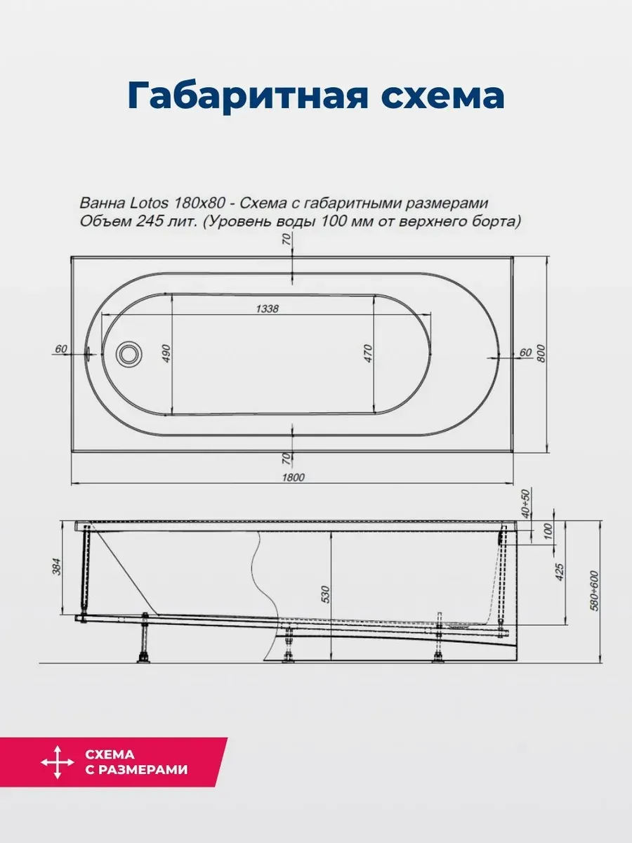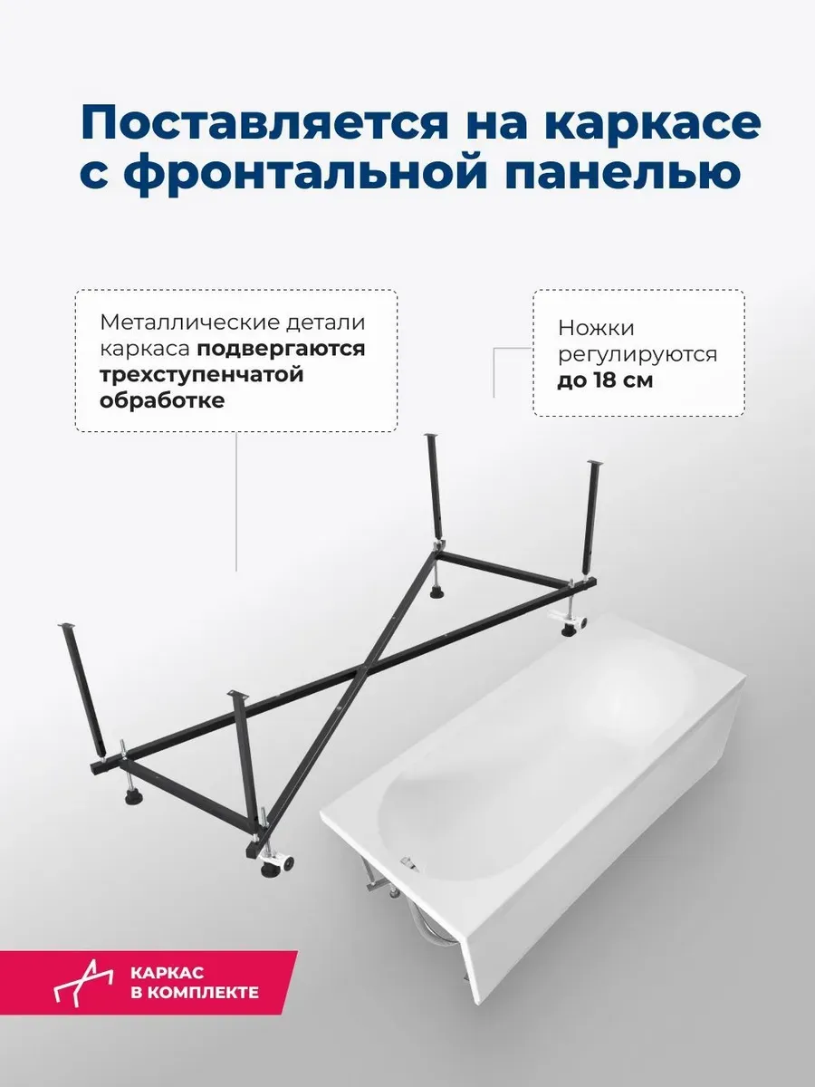 Акриловая ванна Aquanet Lotos 347161 180x80 см с каркасом и фронтальной панелью купить