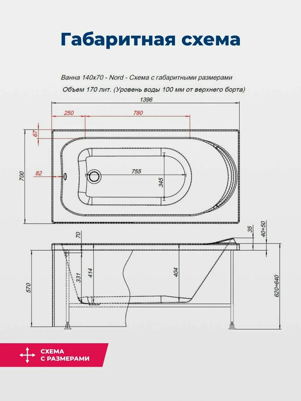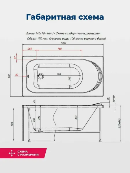 Акриловая ванна Aquanet Nord 347884 140x70 см с каркасом с боковой и фронтальной панелями