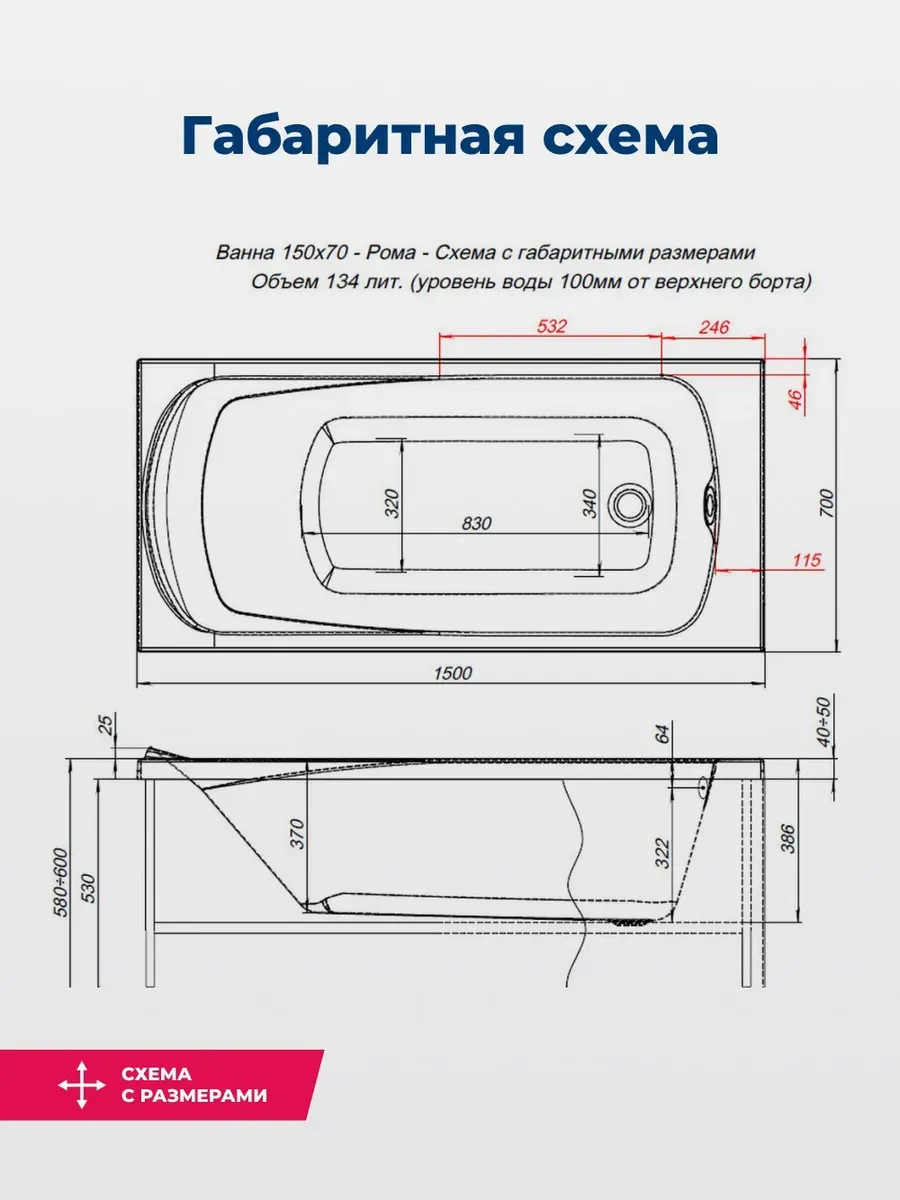 С вместимостью 134 литра и удобными размерами 1500x700 мм, ванна Aquanet ROMA предлагает простор... Подробнее