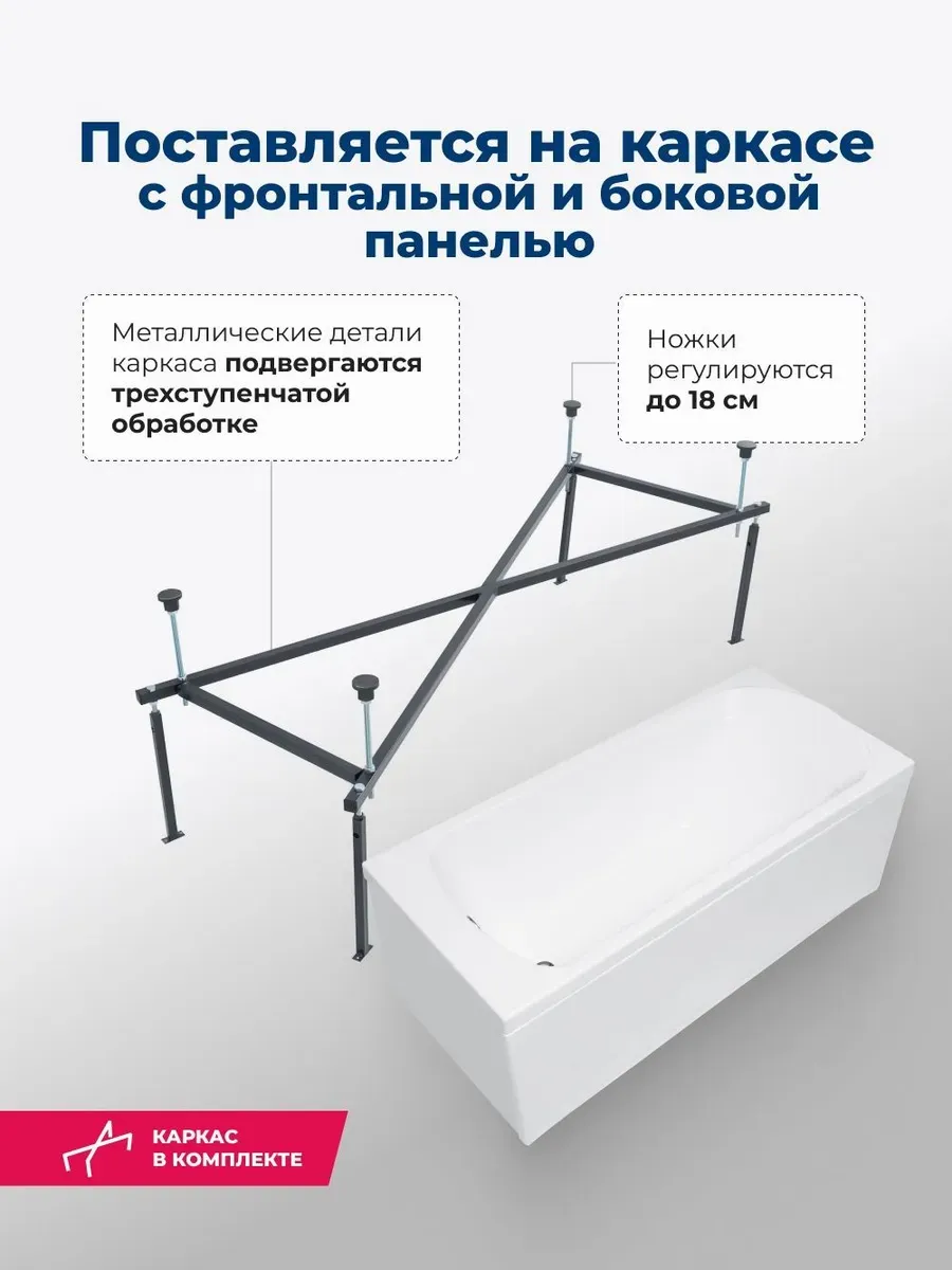 Акриловая ванна Aquanet Roma 347890 170x70 см с каркасом с боковой и фронтальной панелями купить