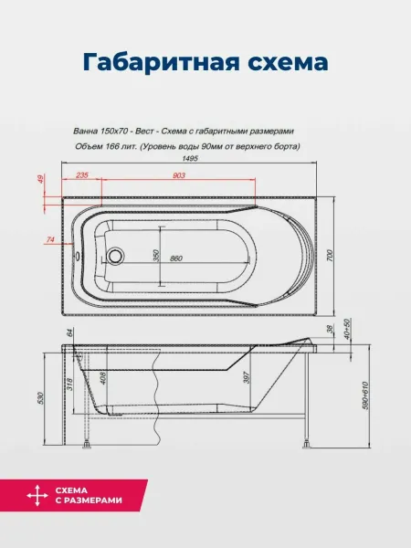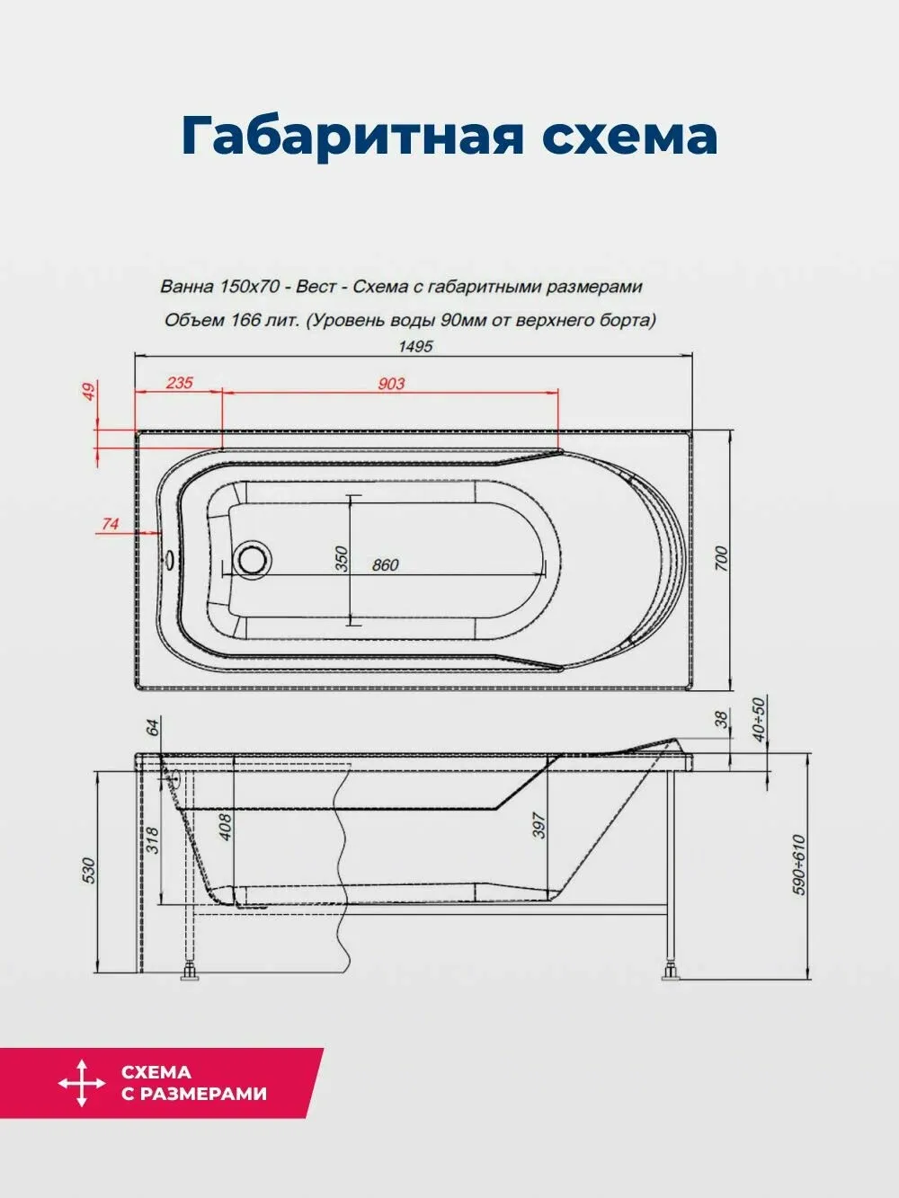 Акриловая ванна Aquanet West 150x70 - прекрасный выбор модели эконом-класса стандартного размера... Подробнее