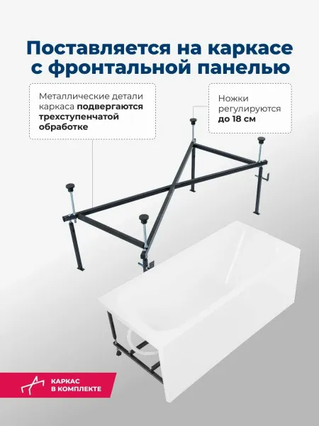 Акриловая ванна Aquanet West 347178 160x70 см с каркасом и фронтальной панелью
