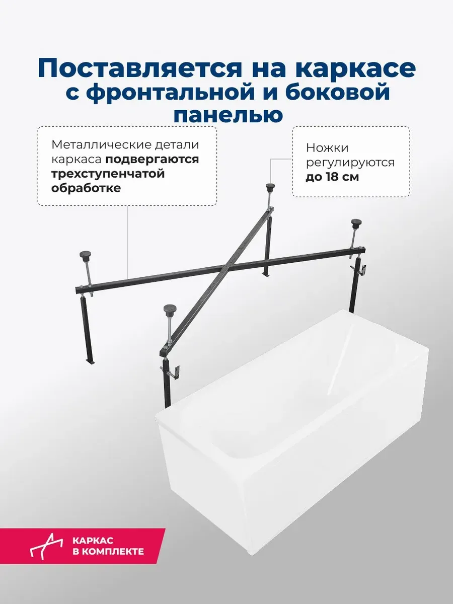 Акриловая ванна Aquanet West 347898 130x70 см с каркасом с боковой и фронтальной панелями купить