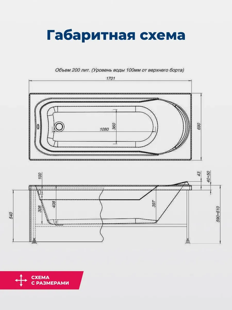 Акриловая ванна Aquanet West 347902 170x70 см с каркасом с боковой и фронтальной панелями