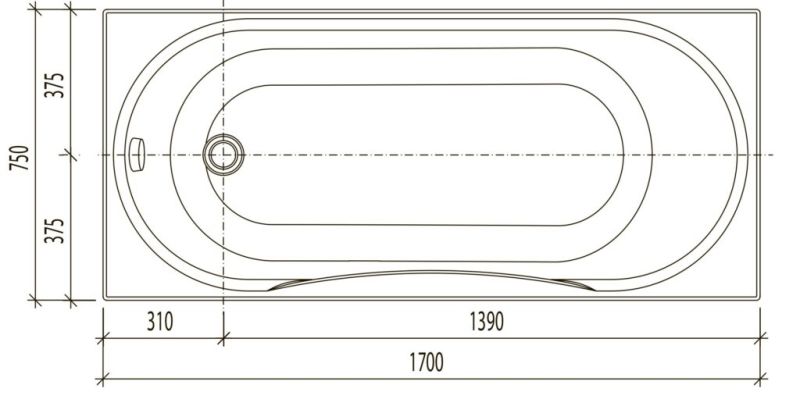 Акриловая ванна Aquanika Form A1017075026 170x75 см белый