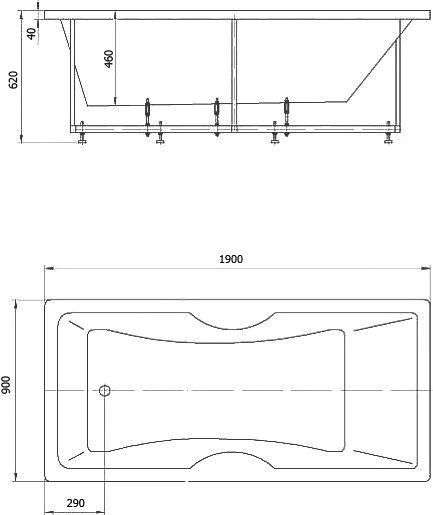 - Ванна устанавливается на каркас, который поставляется в комплекте