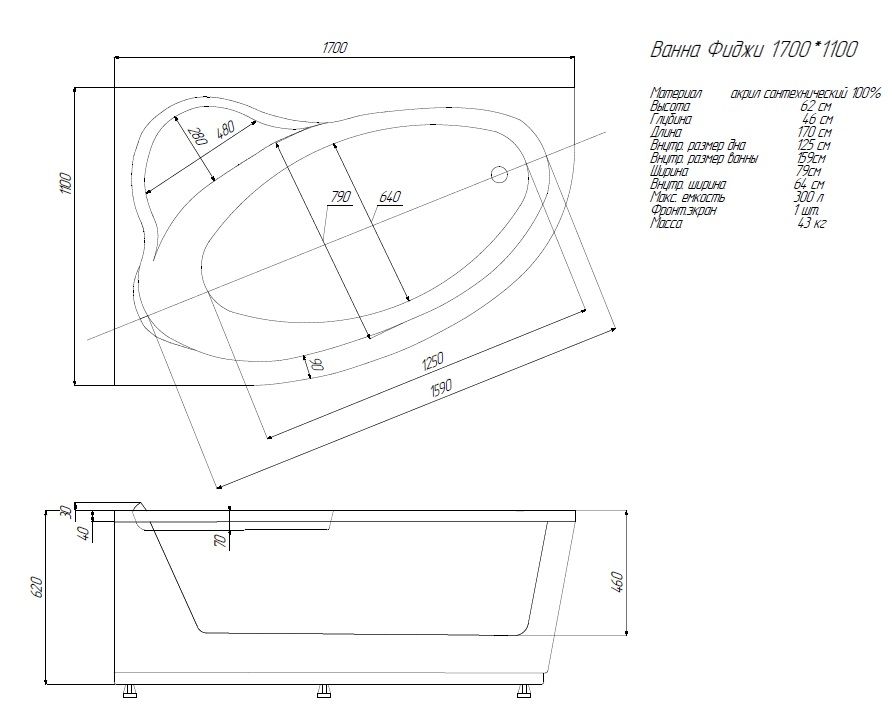 Габариты (Д Ш), см: 170х100Высота с опорой, см: 62Объем, л: 300 Форма: асимметричнаяМонтаж: пристеннаяРасположение перелива: стандартноеДиаметр слива ванны, см: 5,2Гарантия: 20 летСтрана: Россия Вид опоры: вклеенный каркас в комплектеЭкран: фронтальный, в комплектеСлив-перелив: полуатомат, в комплектеАнтискользящее покрытие: нескользкая поверхностьПодголовник: приобретается отдельноРучки: приобретаются отдельно Система гидромассажа: установка по желаниюАэромассаж: установка по желаниюХромотерапия: установка по желаниюРучки, поручни для ванны: установка по желаниюВстроенные смесители: установка по желаниюИзменение конструкции каркаса: установка по желаниюОзонирование: нет, установка не предусмотренаЗащита от сухого пуска: установка по желаниюУправление: любое по желанию
