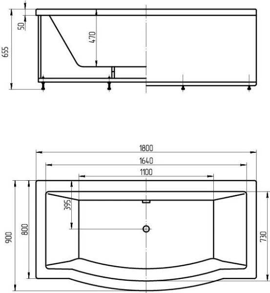 • Ванна устанавливается на каркас, который поставляется в комплекте