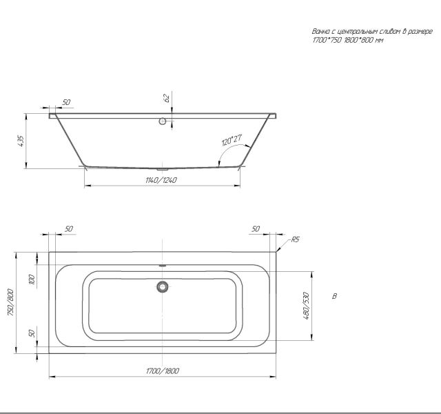 Габариты (Д Ш), см: 170х75Высота с опорой, см: 62Объем, л: 250 Форма: прямоугольнаяМонтаж: пристеннаяРасположение перелива: по центруДиаметр слива ванны, см: 5,1Материал: 100% литьевой акрилЦвет: белыйГарантия: 20 летСтрана: Россия Вид опоры: каркас сборно-разборный металлический (шпильки) или опорная конструкция (ножки), приобретается отдельноЭкран: фронтальный и боковой, приобретаются отдельноСлив-перелив: нет, приобретается отдельноАнтискользящее покрытие: нескользкая поверхность