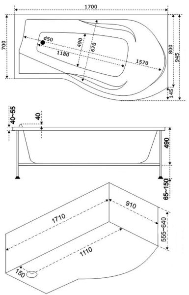 Размеры: 1700 x 800 мм