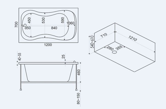 Состав поставки: Ванна, Каркас