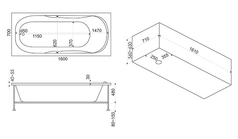 Ширина:700 ммВысота:630 ммГлубина:430 ммДлина:1600 ммЦвет:БелыйМатериал:Литьевой акрил-