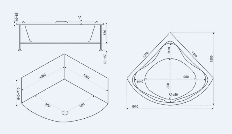Глубина ванны по центру: 500 мм