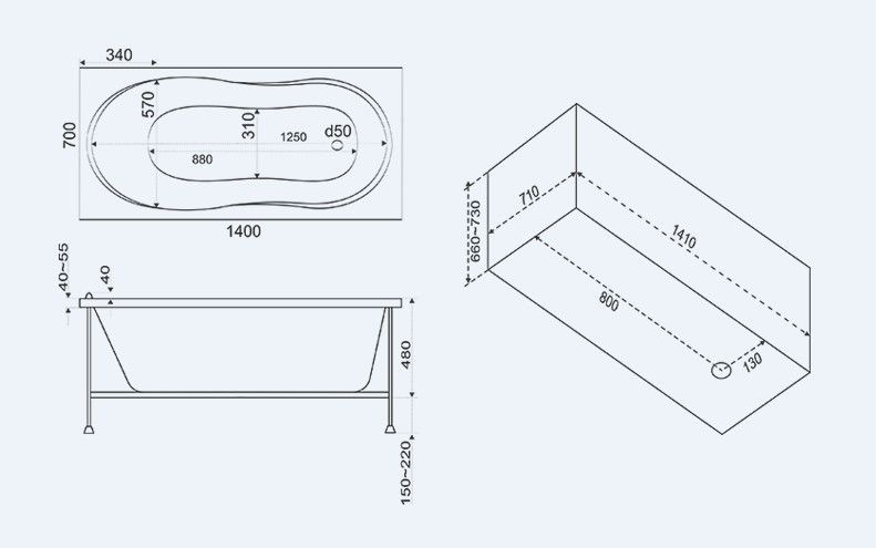 Состав поставки: Ванна, Каркас