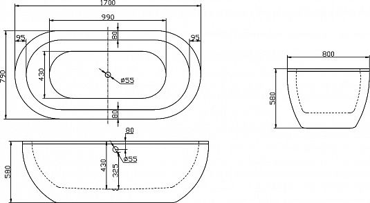 Размер: 1700x790x570 мм, объем 200 л