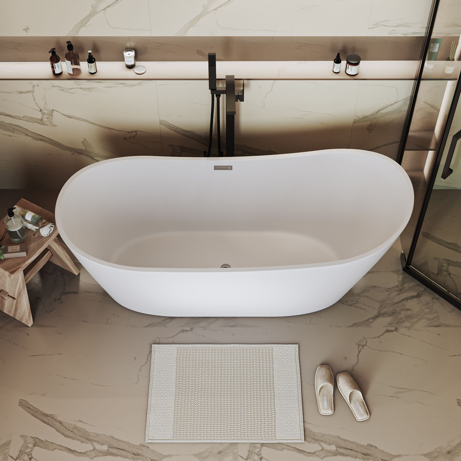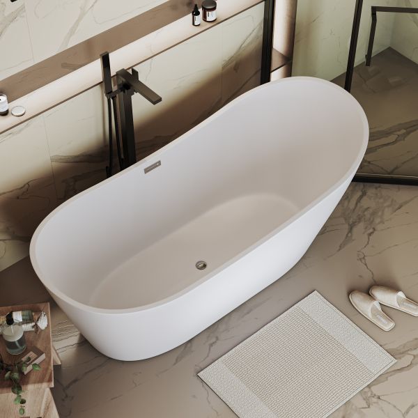 Ванна изготовлена из акрилового листа толщиной 5 мм, что обеспечивает прочность и долговечность изделия. Акриловый материал также приятен на ощупь и сохраняет тепло воды на длительное время, создавая комфорт при принятии ванны. Ванна выполнена в белом матовом цвете. Дополнительно, данная ванна обладает антибактериальным покрытием, которое предотвращает размножение бактерий и обеспечивает гигиеничность использования. Усиленный каркас ванны обеспечивает стабильность и надежность конструкции, что позволяет использовать ванну без опасений и сомнений. Четырехслойная армировка ванной усиливает ее прочность и структурную целостность, что делает ее стойкой к воздействию внешних факторов и повышает ее долговечность.Эта отдельностоящая ванна сочетает в себе функциональность, надежность и эстетическое привлекательность, создавая идеальное пространство для релаксации и ухода за собой в вашей ванной комнате.