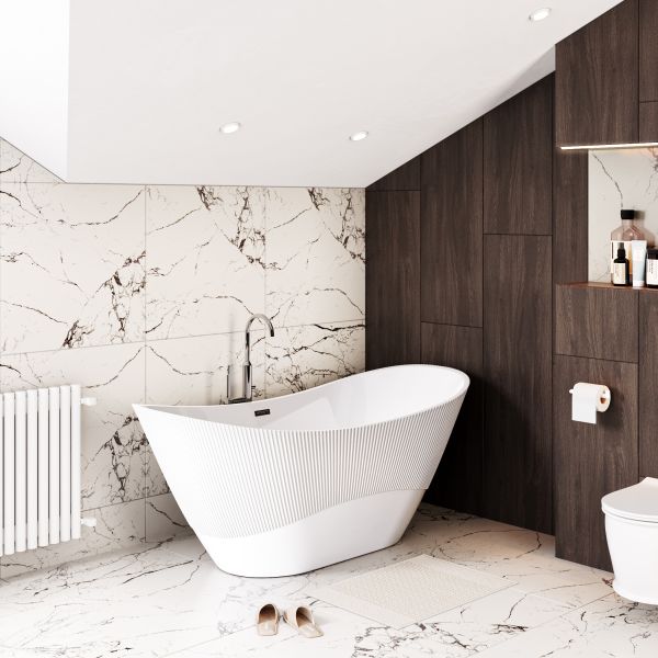 Ванна изготовлена из акрилового листа толщиной 5 мм, что обеспечивает прочность и долговечность изделия. Акриловый материал также приятен на ощупь и сохраняет тепло воды на длительное время, создавая комфорт при принятии ванны. Ванна выполнена в белом глянцевом цвете. Дополнительно, данная ванна обладает антибактериальным покрытием, которое предотвращает размножение бактерий и обеспечивает гигиеничность использования. Усиленный каркас ванны обеспечивает стабильность и надежность конструкции, что позволяет использовать ванну без опасений и сомнений. Четырехслойная армировка ванной усиливает ее прочность и структурную целостность, что делает ее стойкой к воздействию внешних факторов и повышает ее долговечность. Эта отдельностоящая ванна сочетает в себе функциональность, надежность и эстетическое привлекательность, создавая идеальное пространство для релаксации и ухода за собой в вашей ванной комнате.