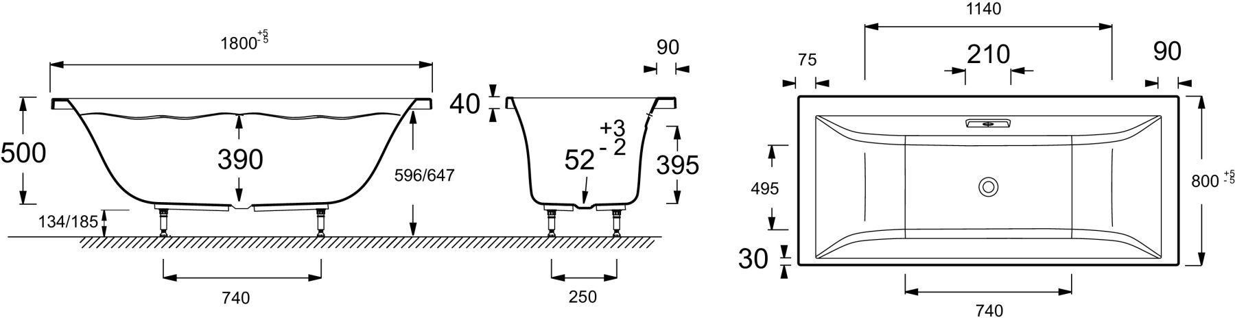 Смягченные углы с внутренней стороны чаши ванны облегчают уход.РАЗМЕРЫ :180 x 80 x 50 см