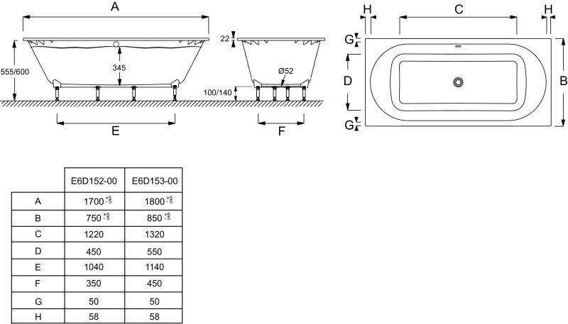 Акриловая ванна Jacob Delafon ODEON RIVE GAUCHE E6D152-00 170 x 75
