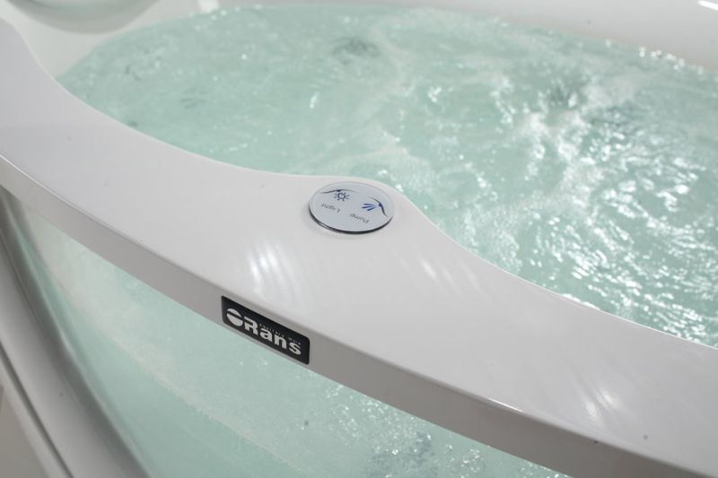 Акриловая ванна Orans BT 65 6510300 150х150Декоративное прозрачное стекло на фронтальной панели идеально впишется в современный дизайн Вашей ванной комнаты, наполняя интерьер ИЗЯЩЕСТВОМ и ВЫСОКИМ ЧУВСТВОМ СТИЛЯ.Современные системы гидромассажа с регулировкой интенсивности массажного потока:— 4 больших и 12 малых форсунок для гидромассажа