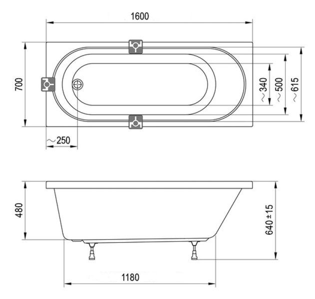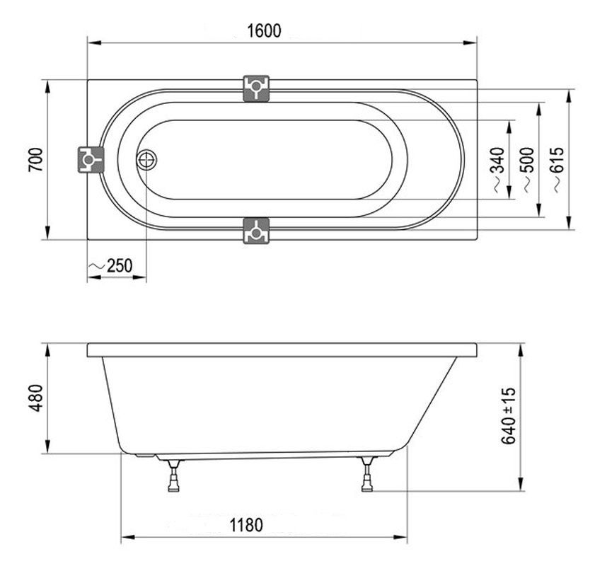 Комплектация: в стоимость входит только ванна, всё остальное, в т.ч. слив-перелив, опора, боковые панели, приобретается отдельно.