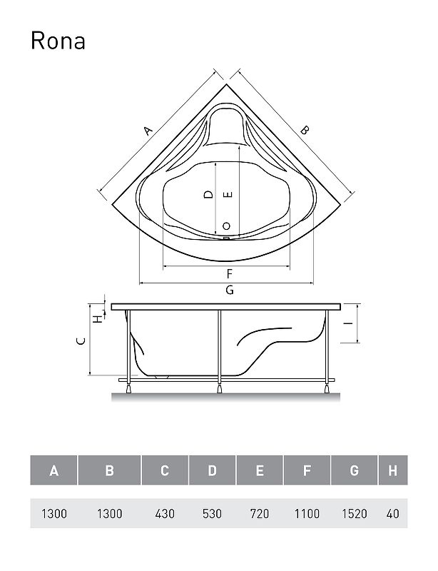 Акриловая ванна Relisan Rona 130х130 Гл000011627 без гидромассажа