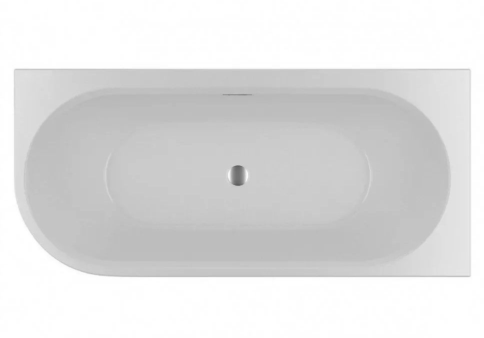 Асимметричная глянцевая белая акриловая ванна RIHO DESIRE CORNER 184х84 L (радиусная часть слева) с двойными стенками, со встроенным переливом и нажимным донным клапаном.