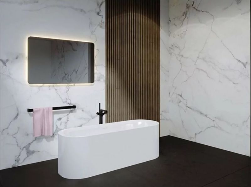 Белая глянцевая ванна FALL поставляется в стандартной комплектации с хромированным сливом переливом