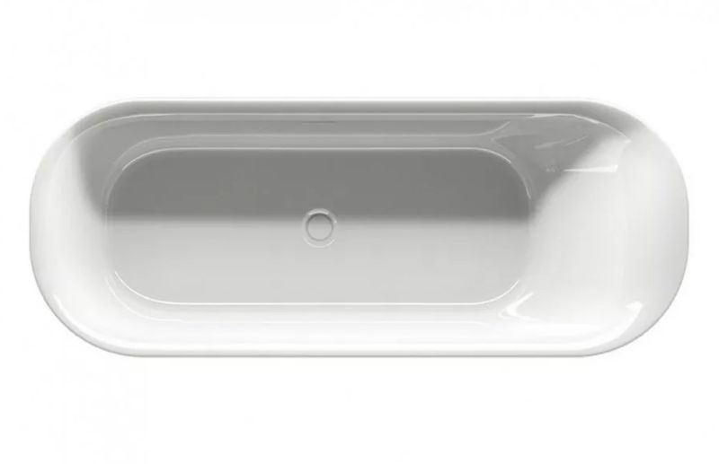 Отдельно стоящая глянцевая белая акриловая ванна RIHO DEVOTION FREE 180х71x46 FALL (заполнение через перелив) с двойными стенками, со встроенным переливом и нажимным донным клапаном.